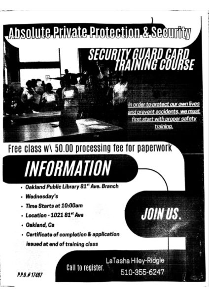 Then, Ward passed each attendee a copy of a new flyer for a different security guard training, also hosted by Absolute Private Protection & Security.