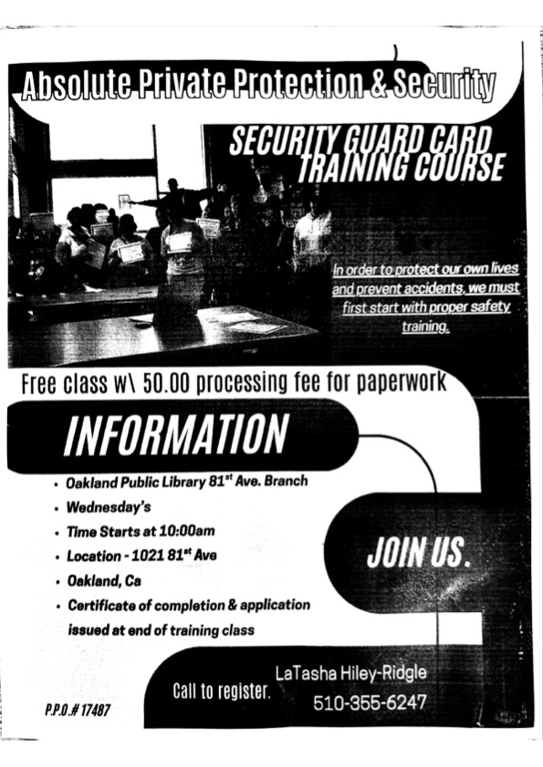 Then, Ward passed each attendee a copy of a new flyer for a different security guard training, also hosted by Absolute Private Protection & Security.