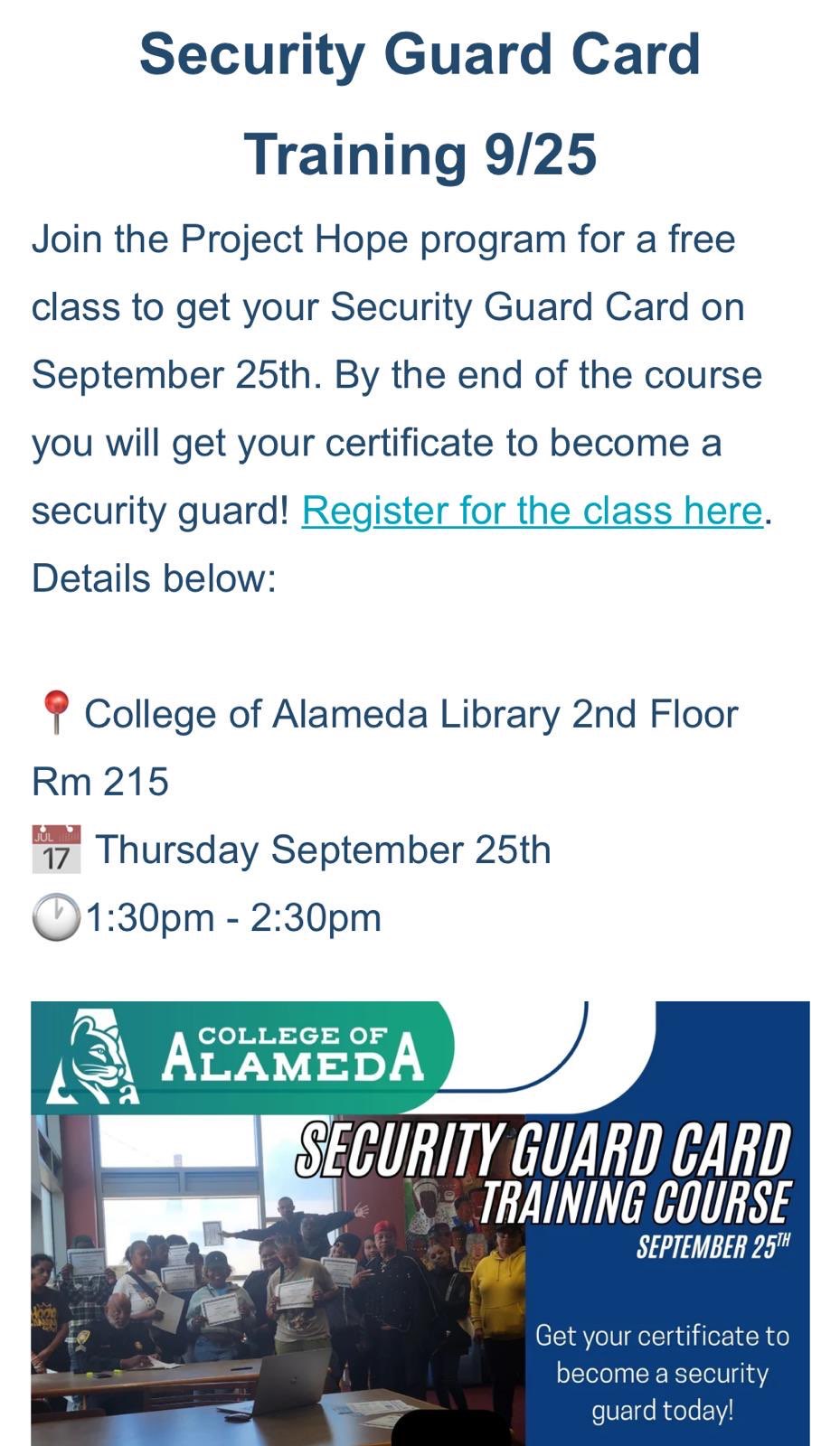 The original “free class” to obtain a “security guard card” was promoted through a Sept. 22 CoA student services newsletter. An attached flyer for the event claimed attendees would receive a “certificate to become a security guard” after a one-hour training.